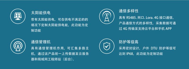DTU 测温主机,为解决现场应用环境复杂,测温主机较多,为了节省通讯所产生的费用,需要集中管理统一上网提供带有测温传感器汇集功能,又带有集中通讯作用的主机。