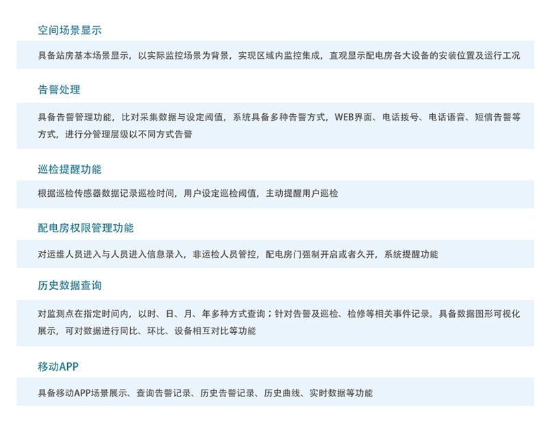 配电房运行环境检测系统是通过摄像机、红外监测仪以及各类传感器和控制器对配电房的运行环境进行监测,以预防和发现配电房出现设备温度过高、绝缘损坏、雨水侵入、气体泄漏、非法进入等异常情况
